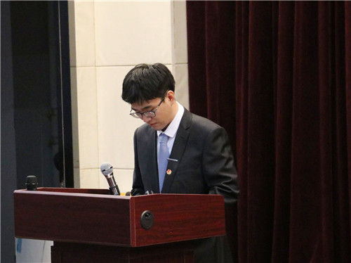 学生会副主席郑浩宣读总监票人、监票人、计票人名单。分别表决通过团代会和学代会监票人、计票人名单后,由双代会总监票人耿金骁主持选举并宣读注意事项。