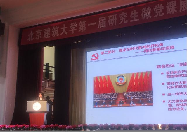 5月22日下午,北京建筑大学第一届研究生微党课展示评比活动在西城校区举行。本届比赛旨在展现学校广大研究生党员不忘初心、锐意进取、勇于担当的精神风貌,引导研究生为实现中华民族伟大复兴的中国梦而努力奋斗,为中华人民共和国成立70周年献礼。