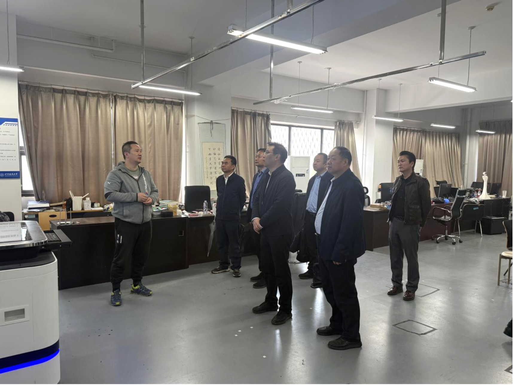 会前,靳源一行参观了18禁创新创业实验室、教师科研团队以及学院文化及科研成果展示。